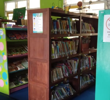 Ruang baca perpustakaan Puri Widya sangat nyaman untuk anak usia sekolah dasar karena di desain lesehan agar anak-anak merasa nyaman